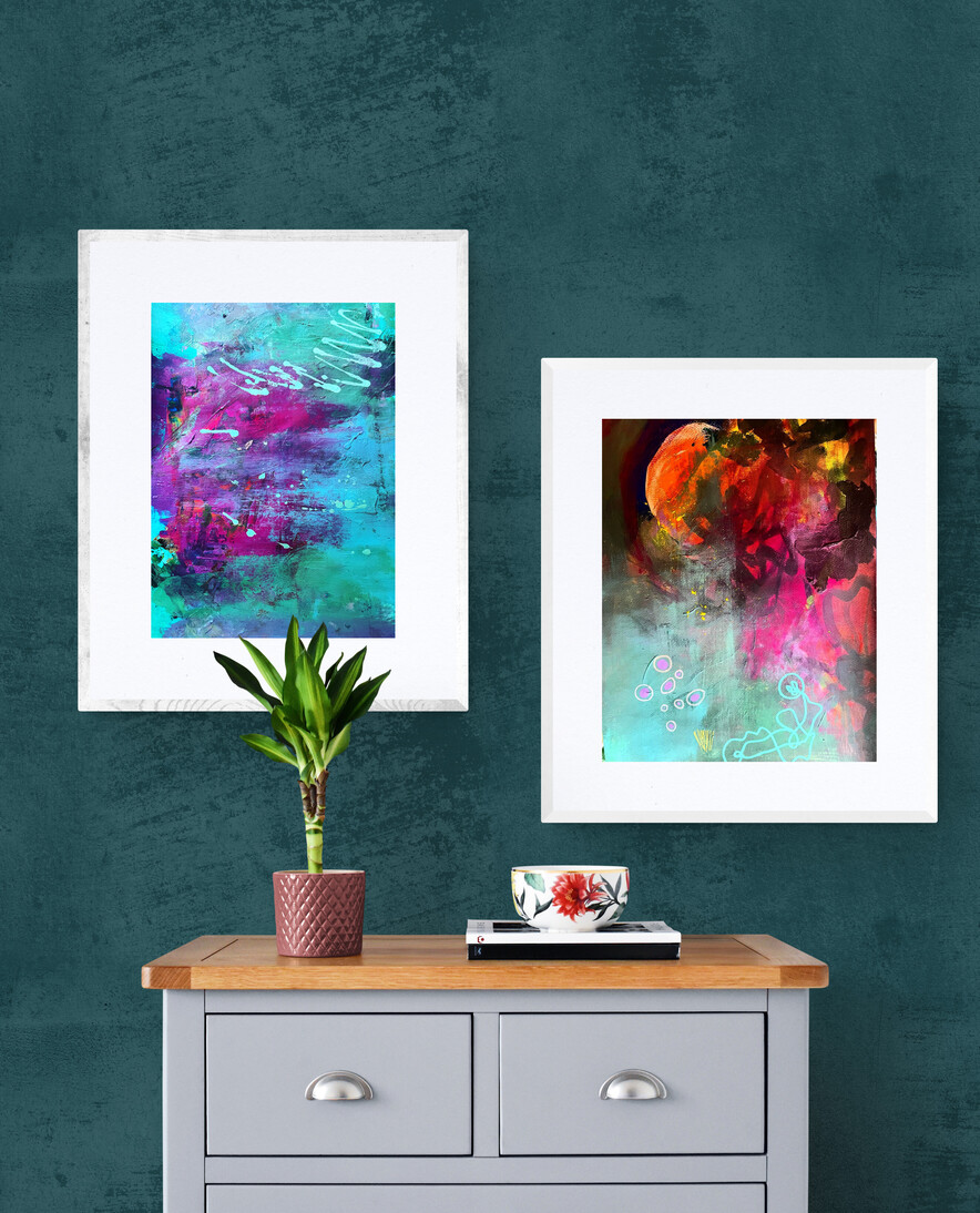 • FRAMES: The painting doesn’t have exterior frames. However, the canvas is stretched on wooden bars, ready to hang on your wall. All my paintings have a hanging system already attached to the wooden bards, so they are ready to hang on the wall. The sides are painted to complement the painting.