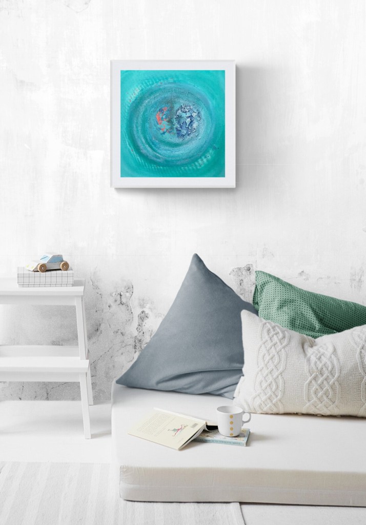 • FRAMES: The painting doesn’t have exterior frames. However, the canvas is stretched on wooden bars, ready to hang on your wall. All my paintings have a hanging system already attached to the wooden bards, so they are ready to hang on the wall. The sides are painted to complement the painting.