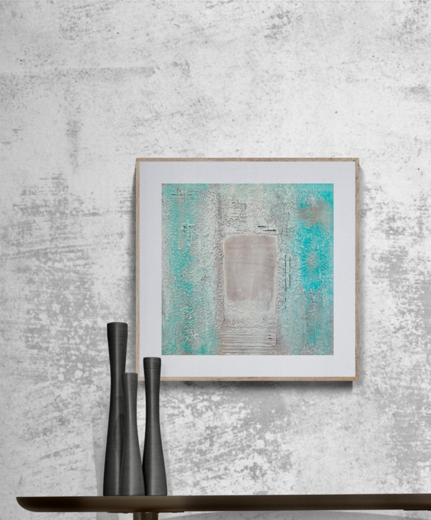 • FRAMES: The painting doesn’t have exterior frames. However, the canvas is stretched on wooden bars, ready to hang on your wall. All my paintings have a hanging system already attached to the wooden bards, so they are ready to hang on the wall. The sides are painted to complement the painting.