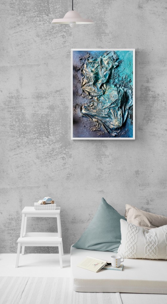 • FRAMES: The painting doesn’t have exterior frames. However, the canvas is stretched on wooden bars, ready to hang on your wall. All my paintings have a hanging system already attached to the wooden bards, so they are ready to hang on the wall. The sides are painted to complement the painting.