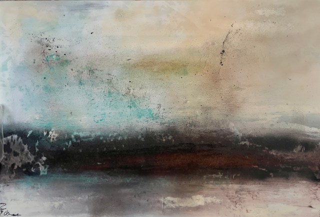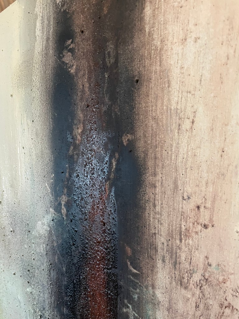 This is an abstract expressionist painting. Mixed media + organic textures on stretched canvas artwork. Ready to hang, 100×150 cm