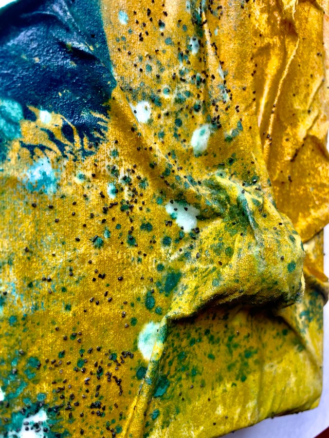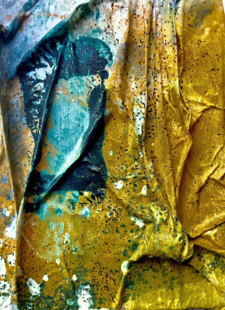 Acrylic, recycled cloth, organic soil + textures on canvas